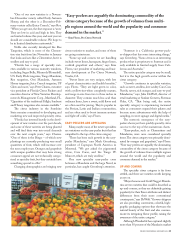 “ ere has been such growth in the easy- peeler Mandarins,” says Mark Greenberg, president of Capespan North America in Montreal. “We get asked for pigmented citrus, Cara Caras, and the Tango W. Murcott, which are truly seedless.”