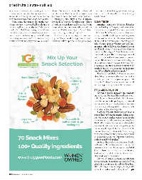 Savvy supermarket retailers are hard at work touting trail mix’s health benefits. “Many times, it is not the supermarket retailers but rather the manufacturer that educates the consumer,” says Blackwell. The manufacturer often tries to dif- ferentiate health aspects on their packaging by mentioning ‘Omega-3,’ ‘fat-free,’ ‘Non-GMO,’ ‘Full of fiber,’ and ‘protein-rich.’ “Also, having these items placed in the produce department in a clear tub gives the impression of being healthier and freshly packed.”
