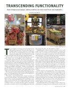 “The produce department has the color, texture and fun shapes and sizes that draw shoppers to want to pick up and touch the product,” says Marjorie Proctor, marketing and design specialist with Dover Food Retail, headquartered in Conyers, GA. Whether displayed in a refriger- ated case or a dry produce display, creative inserts can be used to create a feeling of bountifulness and freshness. “Produce can be displayed in graceful striking patterns, pyramidal forms or neatly partitioned bins to tidy rows, and keep product organized to help trigger impulse buying