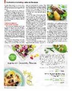 It’s important to think about seasonality when putting produce on a plate, says Staple- ton. “In the summer season you have bright tomatoes, you have great fresh Mozzarella and basil.” People associate those bright col- ors with the time of year, so it makes sense to use them. The same is true for the deeper hues of fall produce, the browns and whites of winter produce, and the Chartreuse and green shades of spring foods.