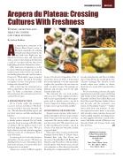 For non meat-eating customers, the ample vegetarian menu includes arepas overflowing with: Andino Cheese And Plantains; Grilled Vegetables and Feta Cheese; Black Beans and Feta Cheese with Plantains; Andino Cheese and Avocado; and the restaurant’s own version of a Venezuelan “Caprese” — Andino cheese, basil pesto and tomatoes. A sepa- rate vegan menu entices diners to try arepas with: avocados, onions, tomatoes, lemon, and cilantro; grilled vegetables including peppers, zucchini, eggplant and onions; or garlic mush- rooms. Side dishes include a Watercress and Avocado Salad, and Cassava Sticks with Avocado Sauce. pb